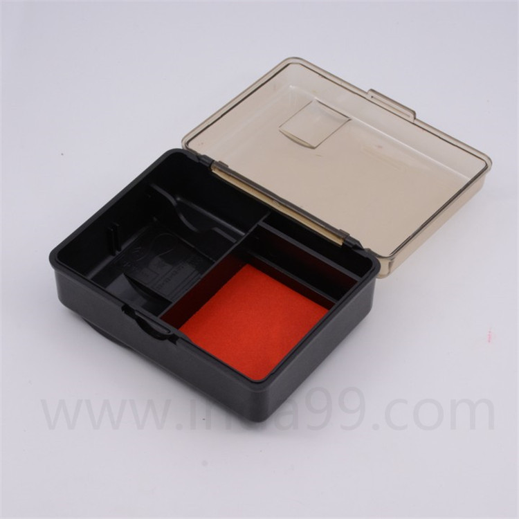 3.盒內(nèi)有分二格,左邊用來(lái)放置公章,右邊的印臺(tái)上方可以架著放置二枚方章,隨章盒