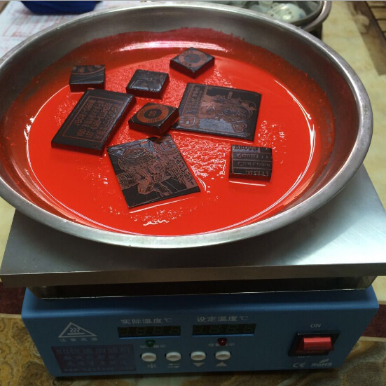 加熱到一定溫度,又不分解印油成分,又能讓印油更快速浸入光敏印章墊。